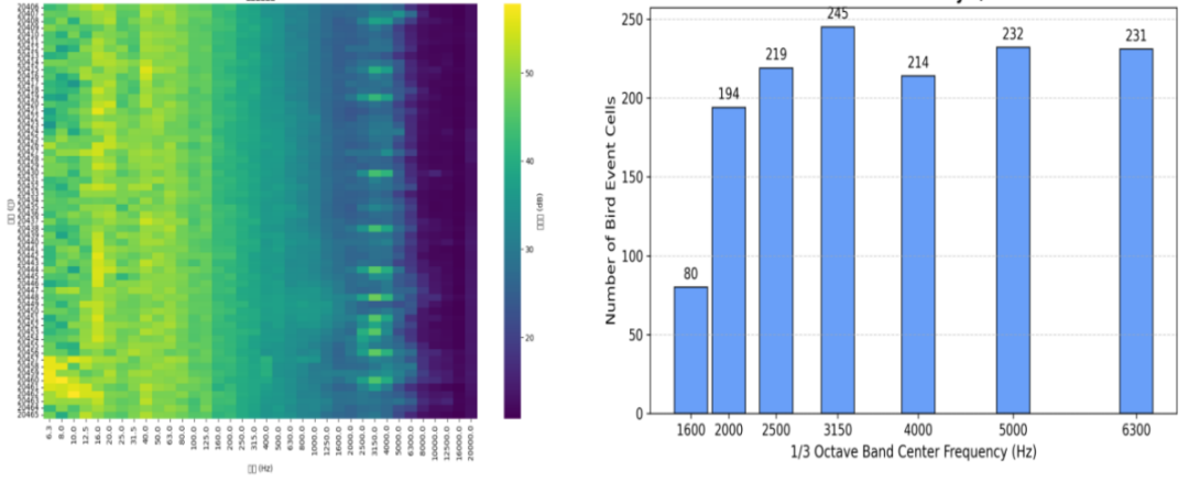 针对南通市长期受自然声影响的站点,江苏省环境监测中心在比对现场架设了频谱分析仪,采集包含自然声与区域噪声的混合声信号,利用频谱分析功能生成详细频谱图,通过智能对比不同噪声源的频谱基线,快速识别出不同噪声对应的频率范围及能量特征,借助数智化模型的处理功能,对不同来源的声音能量进行量化评估,可为区域噪声污染成因分析提供参考,为精准开展噪声污染防治工作提供技术支撑。