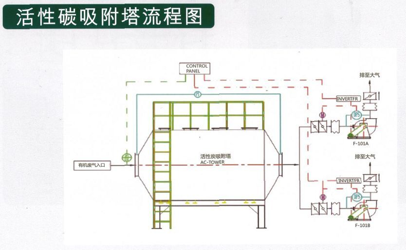 工作原理:活性碳吸附塔系列利用高性能活性碳吸附(adsorbent)固体本身的表面作用理,将VOC分子吸附( adsorbent )吸引附着在在吸附剂表面,以达到去除VOC物质之目的